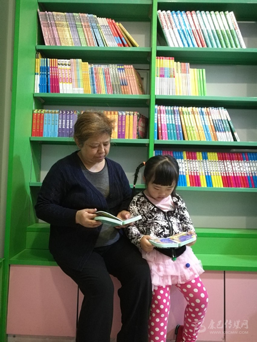 老人陪同孫女看書(shū)。
