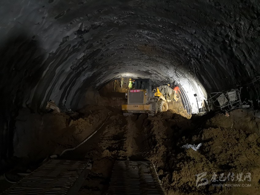 4月9日,記者走進(jìn)TJ2標(biāo)段已開挖成型的主洞,見到進(jìn)洞100米左右,工人們正在綁扎支護(hù)用的鋼筋。再前進(jìn)200米左右,一臺(tái)二襯臺(tái)車正在加固初步成形的隧頂。走上約20米的移動(dòng)棧橋,就到了隧洞底端的掌子面,一臺(tái)挖掘機(jī)正在隆隆作業(yè),很快就堆起一座泥石小山。據(jù)工作人員介紹,由于土質(zhì)松散,從安全和質(zhì)量方發(fā),每天進(jìn)行兩個(gè)循環(huán)開挖,一天能完成2米左右的進(jìn)度。