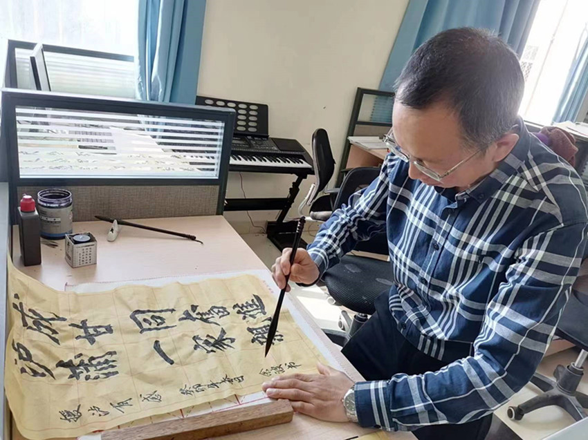 此外,在進(jìn)行語文教學(xué)的同時,他還結(jié)合以前當(dāng)音樂教師的優(yōu)勢,參與學(xué)校合唱隊(duì)的訓(xùn)練。2022年11月,他指揮的合唱隊(duì)在我州“五育并舉”學(xué)生合唱比賽中斬獲第一名的好成績。
