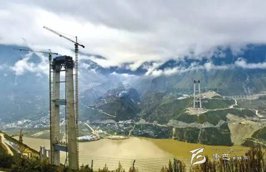 在洶涌的大渡河上,一座嶄新的大橋——瀘定大渡河特大橋,正在火熱建設(shè)中。
