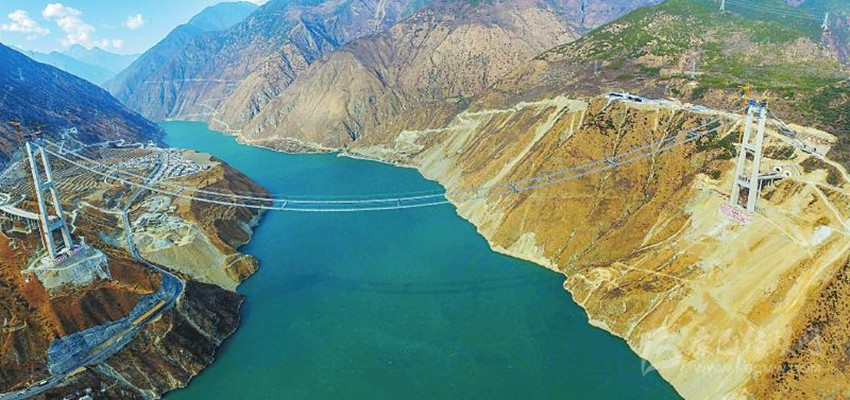興康特大橋由四川省交投集團投資、四川路橋集團承建,是一座建設(shè)在高海拔、高地震烈度帶、復(fù)雜風(fēng)場環(huán)境下的超大跨徑鋼桁梁懸索橋。全橋長1411米,主跨長1100米,為四川第一跨徑懸索橋。因其施工難度大,建設(shè)中要克服很多世界難題,也被稱作“川藏第一橋”。