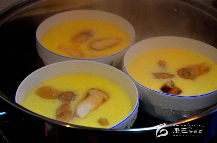 取2顆雞蛋用溫開水調(diào)勻,加少許鹽;旺火隔沸水蒸3分鐘左右;待蛋表面凝聚,輕輕把松茸片放在上面繼續(xù)蒸3分鐘左右即可。